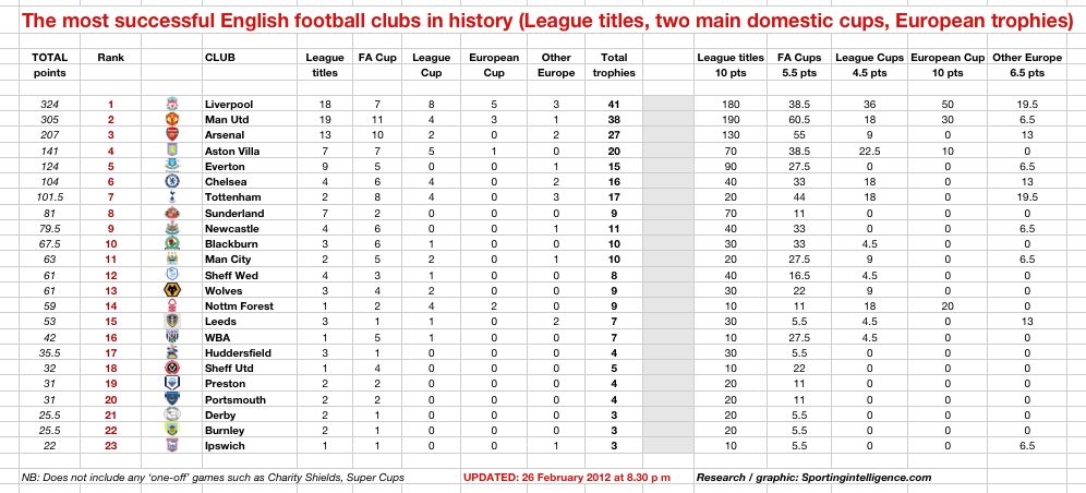 And so, if community shield titles are to count in the trophy haul, man utd have won 66 major titles to liverpool's 62, sealing their status as the most . Man u have won the league 20 times to liverpool's 19 (and a total of 66 trophies to 65), while liverpool . Manchester united are one of the world's most successful soccer clubs with a total of 66 trophies, including 20 english league titles. Yes, liverpool have won the premier league trophy. Liverpool lead the way with six european cup titles, compared to united's .